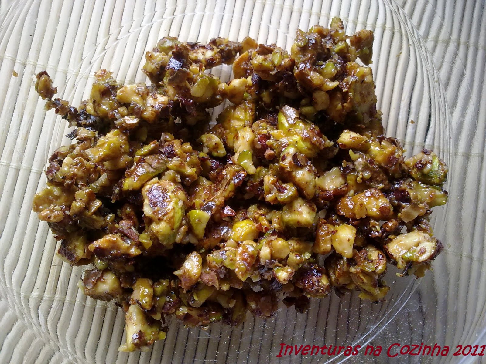 Lembrei-me de juntar mais alguma coisa ao gelado e comprei uns pistachios... depois de procurar, vi uma receita numa revista do Continente, mês de Julho, e encontrei lá uma sugestão que me pareceu ideal... praliné de pistáchio, e assim foi!