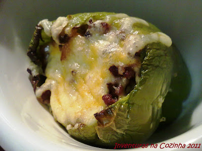 Gosto muito de pimento e para não comer sempre assado ou crú em saladas resolvi variar... como tenho cá em casa a familia, aproveitei para experimentar uns pimentos recheados que tanto me tentaram em inúmeros blogs!