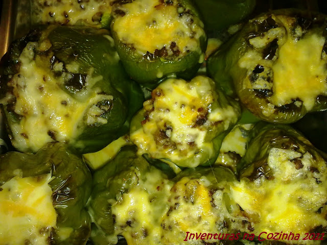 E que bem recheadinhos os pimentos ficaram, com tomates também fica muito bom. Mas se tens "sacadas" de pimento aproveita!