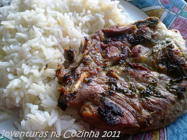A sugestão de hoje foi num dos dias em que chegámos da praia para almoçar e a carne já estava temperada e o arroz foi só aquecer..muito rápido!...mas o que gostava de salientar neste prato é mesmo o SABOR! Ficaram umas costeletas maravilhosas... e de uma refeição bem simples, ficou uma receita para repetir... aqui fica...